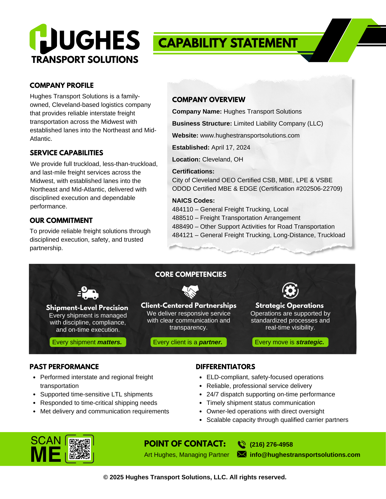 At Hughes Transport Solutions (HTS), every shipment is managed with operational discipline, clear communication, and shipment-level precision. We understand that performance, consistency, and reliability directly impact our clients’ operations and reputations.